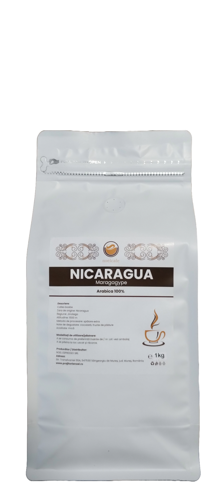 Cafea Boabe Prăjită din Nicaragua - Maragogype, echilibrată în toate departamentele: aciditate, gust și corp. Notele de nucă și cacao evoluează într-un gust după fructe. |