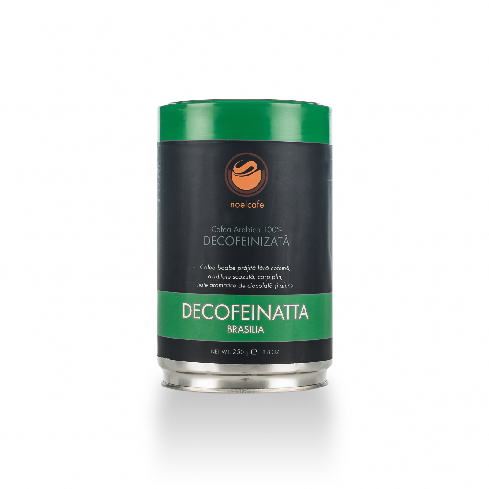 Cafea Boabe Prăjită decofenizată din cafea arabica Brasilia Santos - Decofeinizată, Corp plin cu o aciditate scăzută. Note remarcabile de ciocolată cu alune şi migdale, care într-un gust evoluează cu indicii evidente de malț și cereale prăjite.